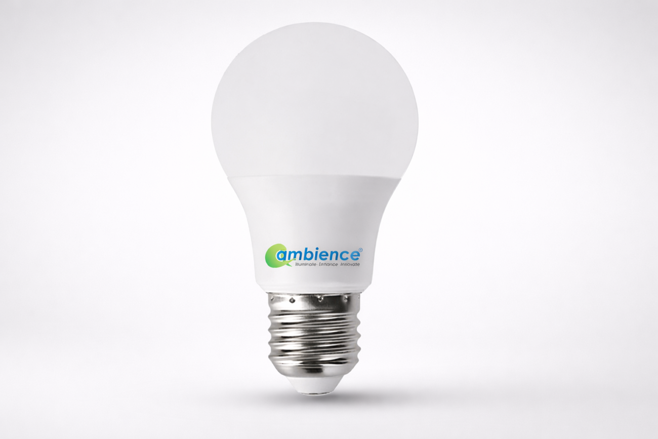 The Ambience Classic A Series LED Bulb is a reliable and energy-efficient lighting solution designed for everyday residential and commercial use. Featuring a classic A60 bulb design with E27 and B22 base options, it ensures wide compatibility with standard fixtures. With a broad voltage range and consistent light output, this bulb delivers stable performance under varying electrical conditions while maintaining an optimal balance of efficiency, durability, and performance.